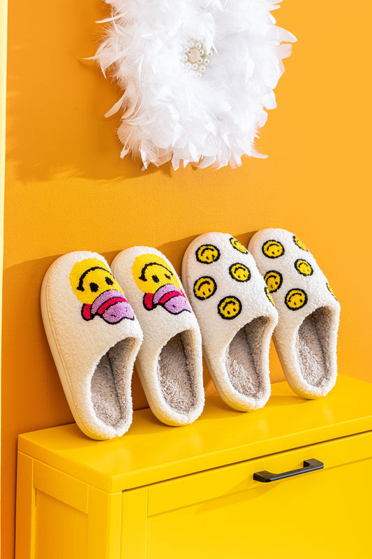 Cowboy Smile Face Comfort Cozy Plush Fluffy Fur Slip On Cushion Slippers