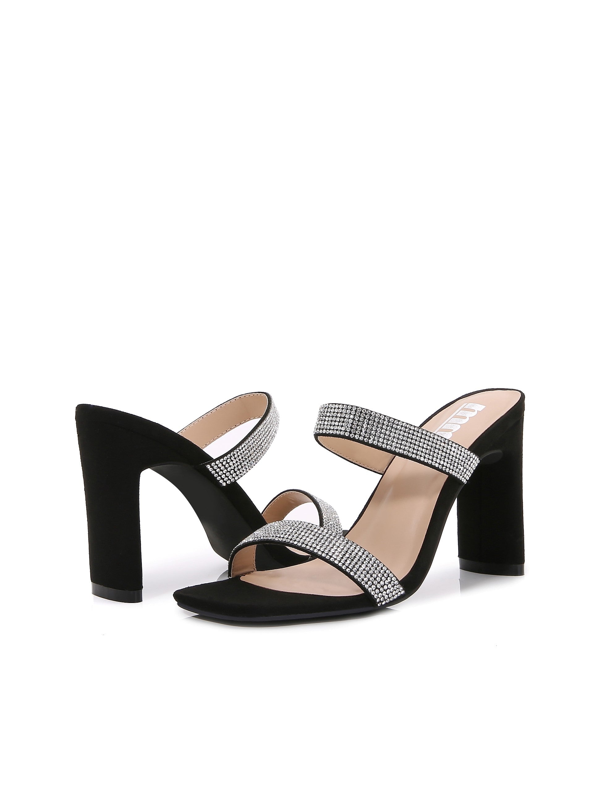 Women Rhinestone Strap High Chunky Heeled Sandals