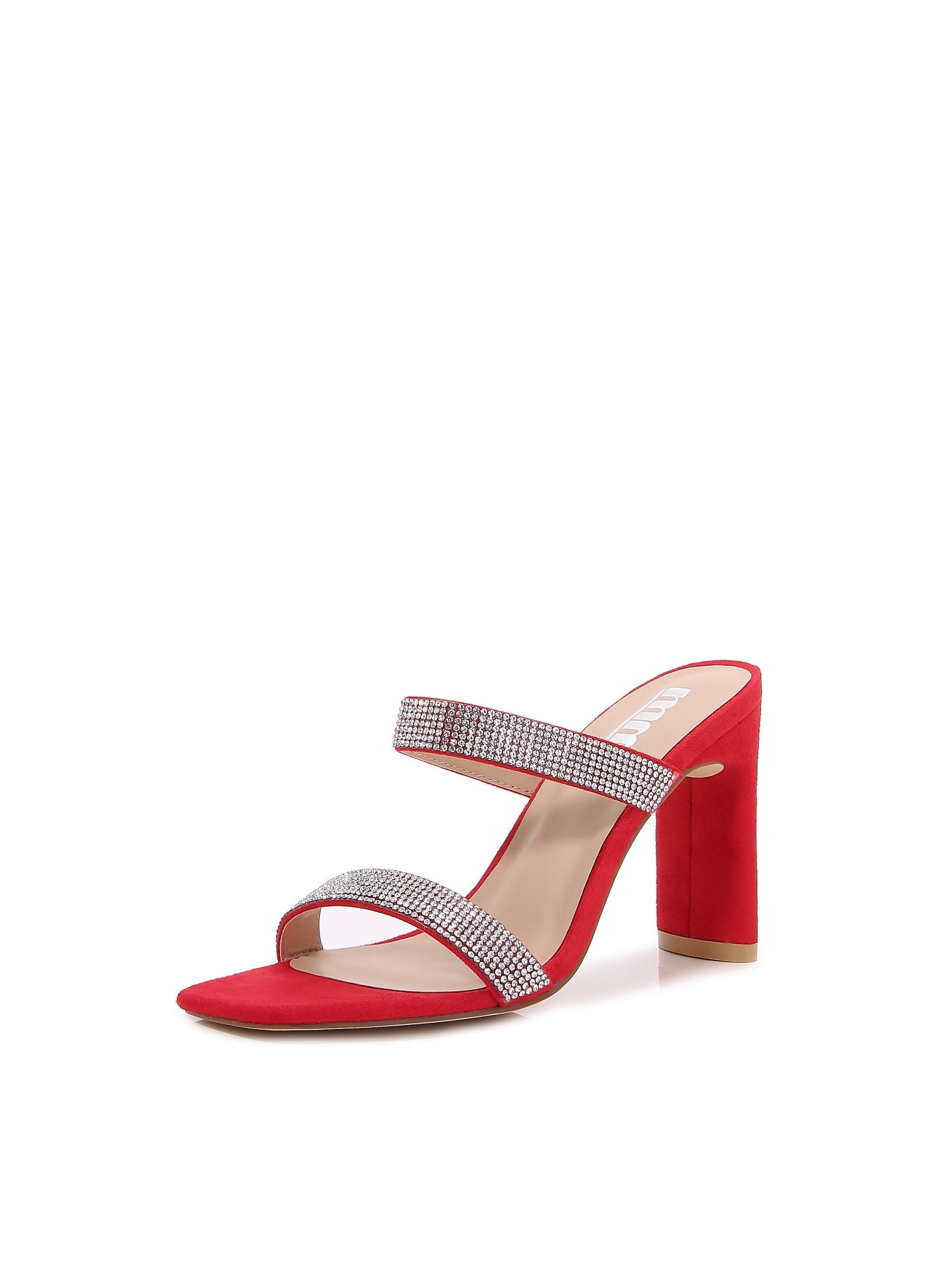 New Women Multi Style Single and double Strap High Chunky Heeled Sandals (Double Rhinestoned)
